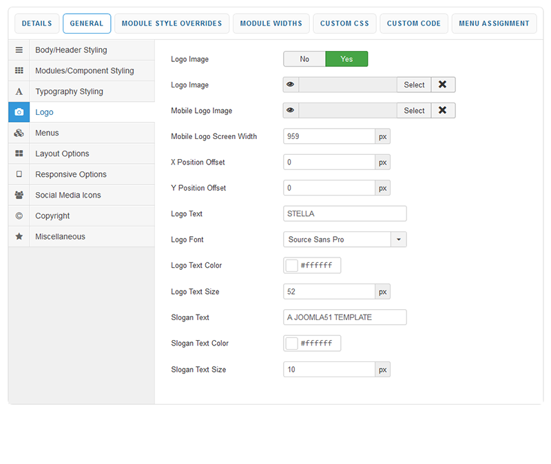 Your template parameters can be access directly from your Template Manager giving you access to a host of features including a selection of template styles, some colour choosers to help customise your template headers and links, a number of layout options and easy to use logo settings.